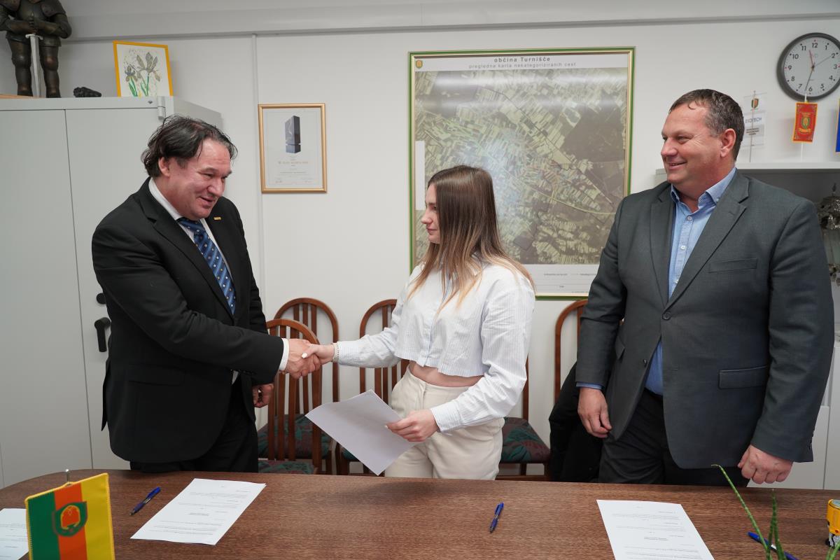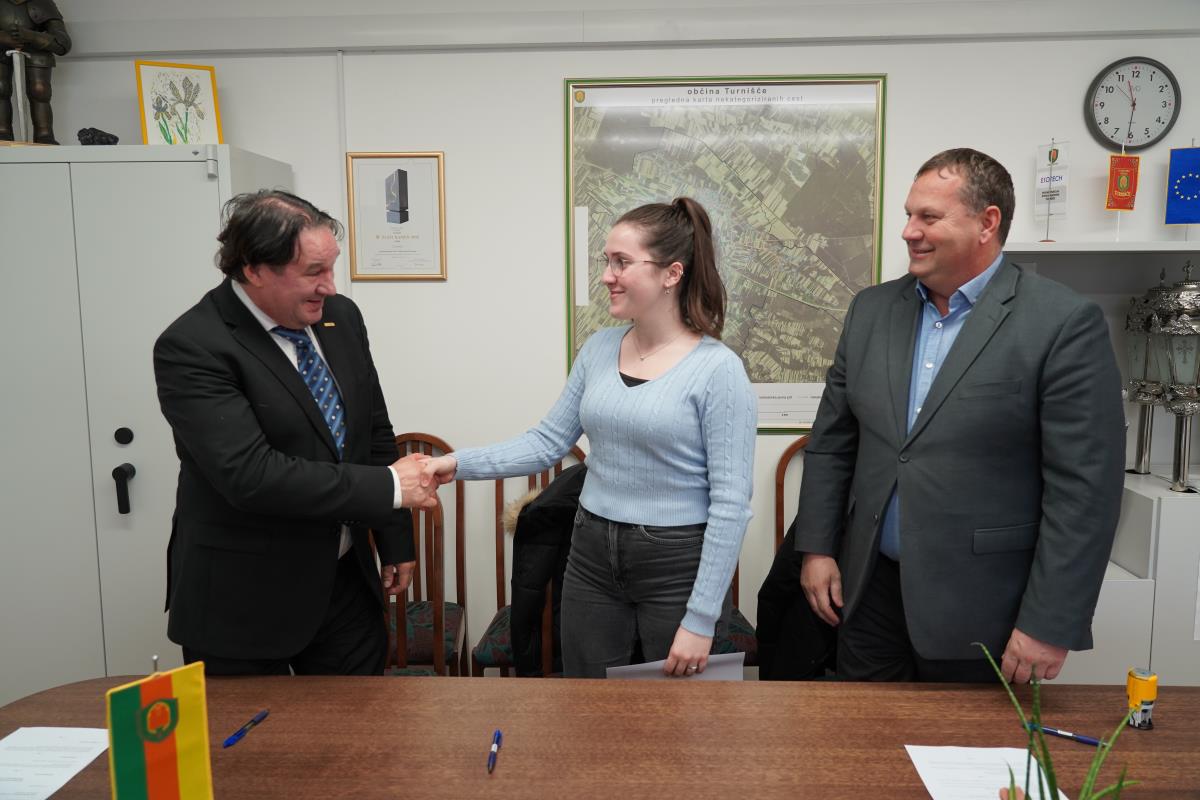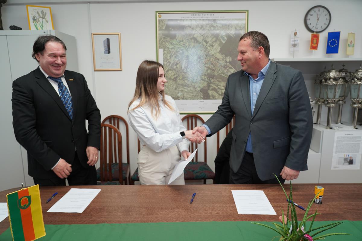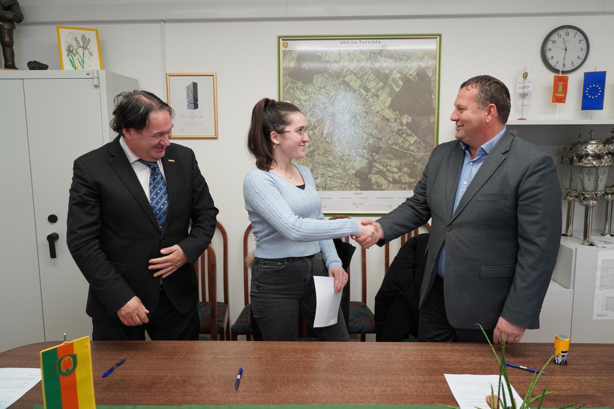 Pogodbe o štipendiranju so slavnostno podpisali skupaj z županom Občine Turnišče, Borutom Horvatom, in predsednikom uprave Pomurske izobraževalne fundacije (PIF), dr. Mitjo Slavincem.